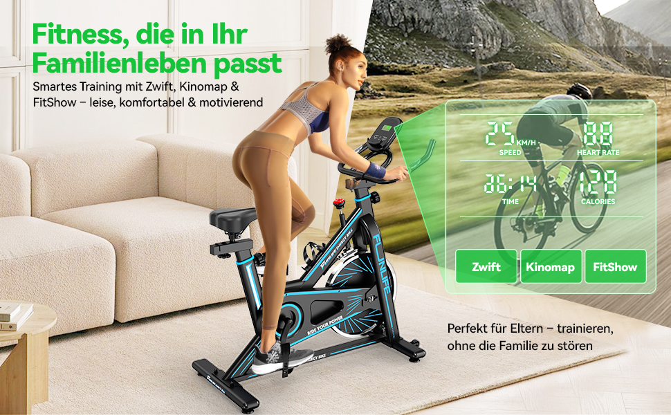 - Bluetooth Ergometer Heimtrainer mit App-Training: Verbinden Sie das Ergometer Fahrrad per Bluetooth mit FitShow oder Kinomap. Trainieren Sie auf virtuellen Strecken, verfolgen Sie Trainingsdaten und steigern Sie Ihre Motivation nachhaltig.