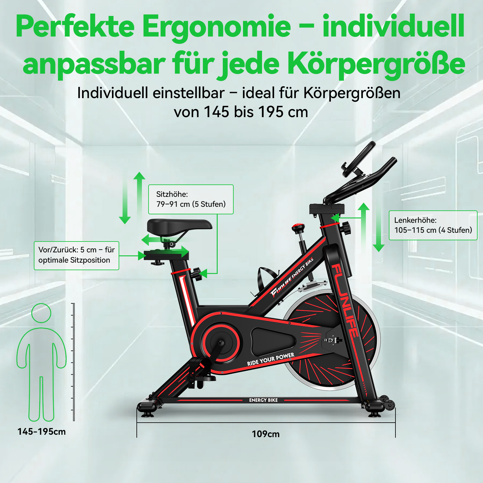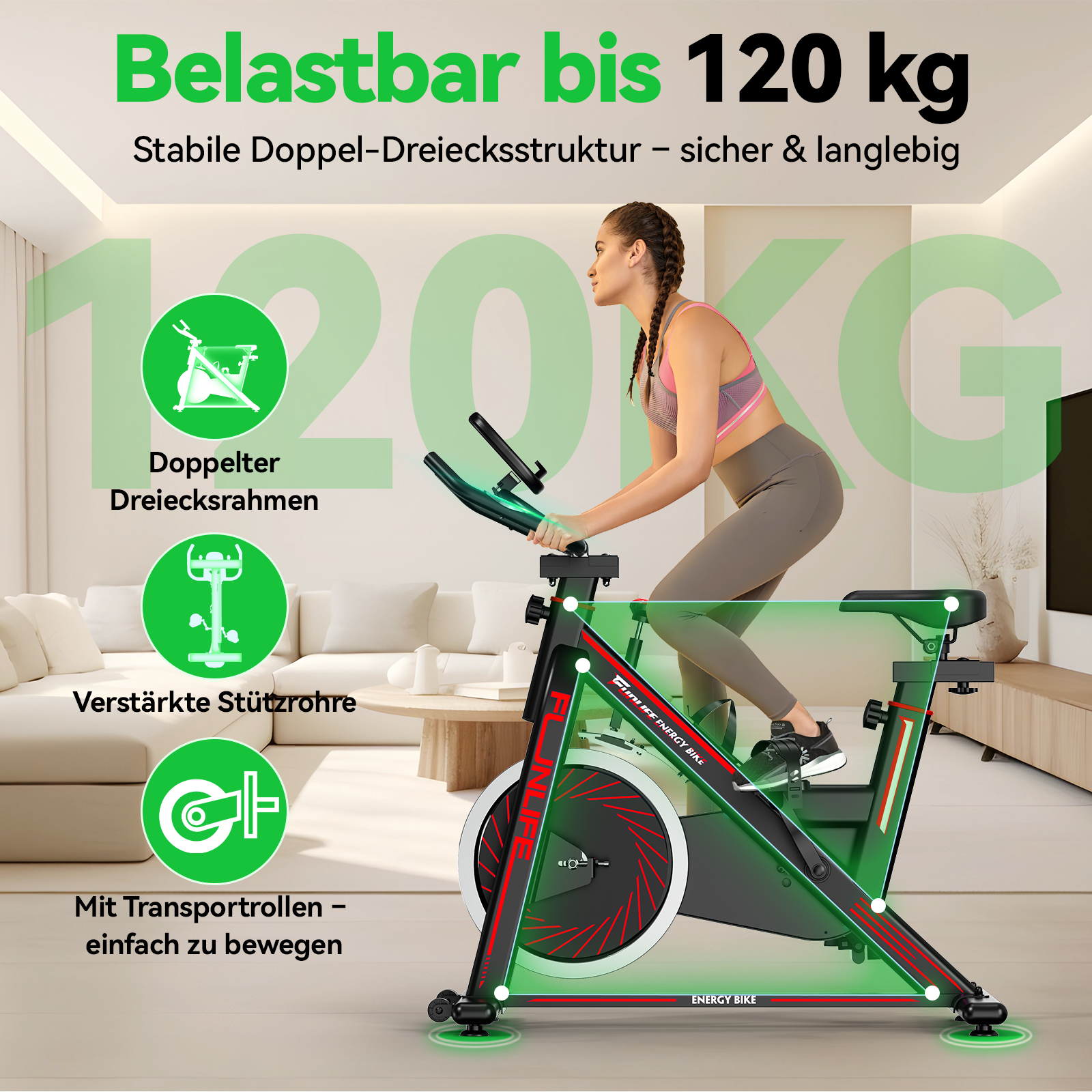 - Ergonomisch & stabil – auch als Heimtrainer für Senioren: Verstellbarer Sitz und Lenker ermöglichen eine komfortable Nutzung für Personen ca. 145–190 cm. Der stabile Stahlrahmen trägt bis 120 kg – ideal auch als Heimtrainer für Senioren.