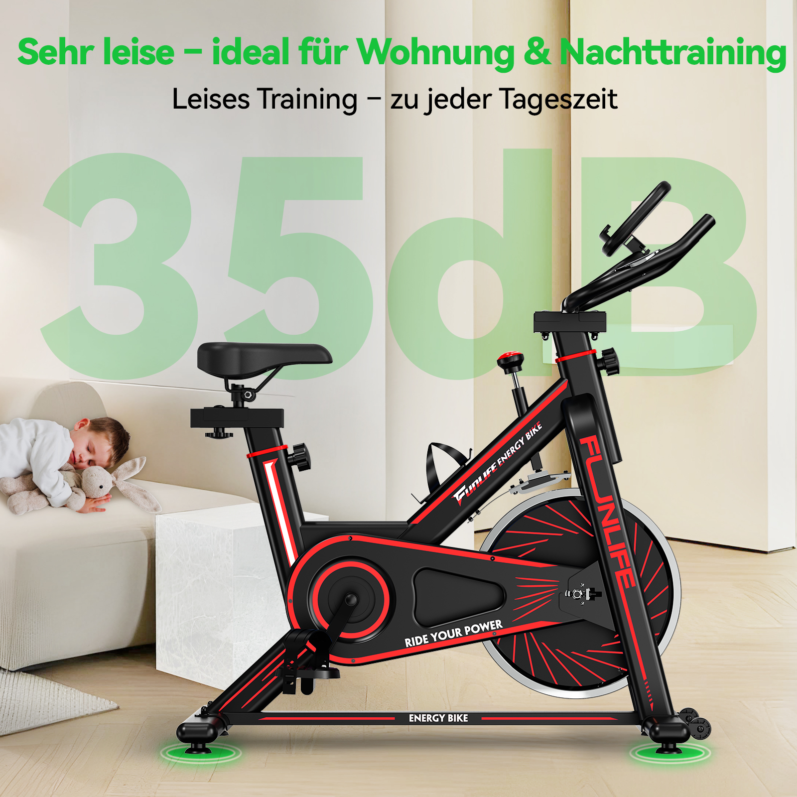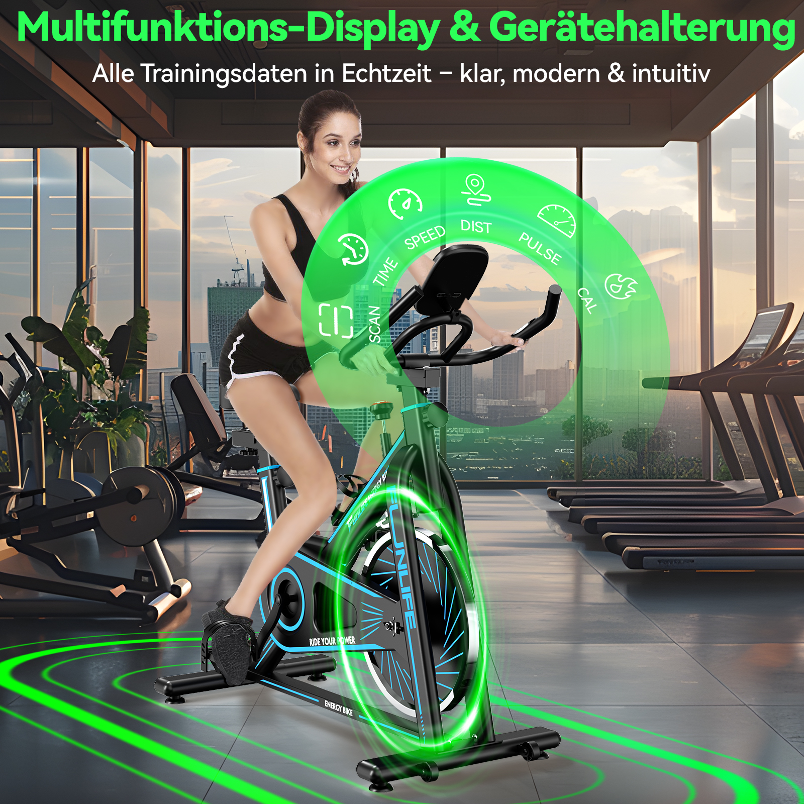 - Indoor Bike & Spinning Bike Indoor mit realistischem Fahrgefühl: Dank Schwungrad und stufenlosem Reibungswiderstand kann das Gerät sowohl als Indoor Bike als auch als Spinning Bike Indoor genutzt werden – von lockerem Training bis zu intensiven Einheiten.