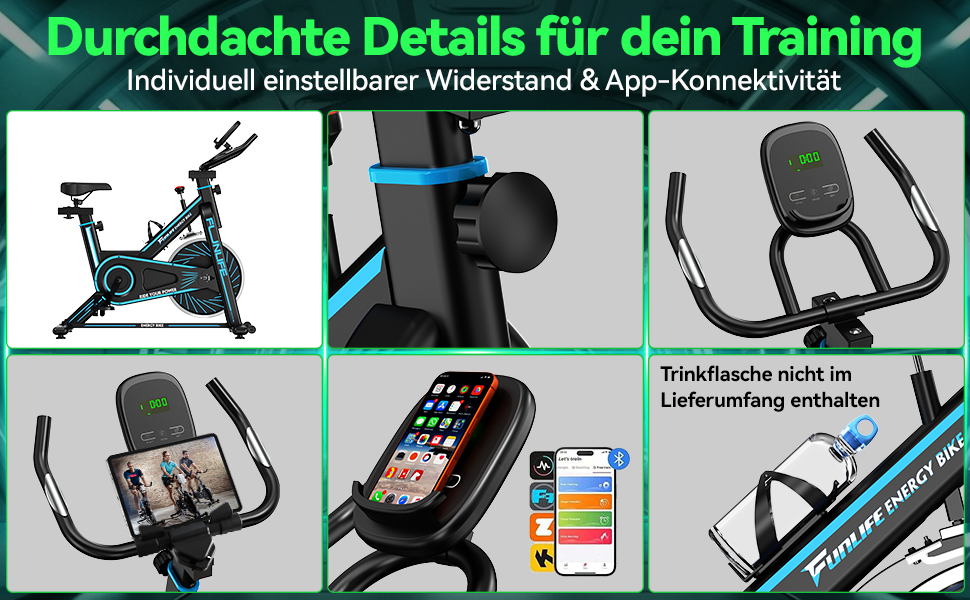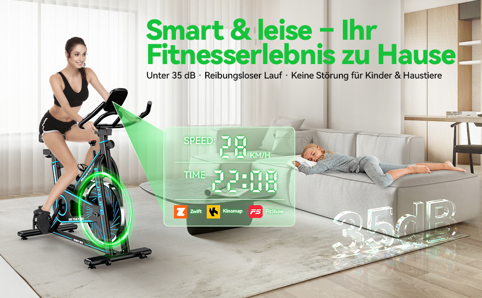 - Bluetooth Ergometer Heimtrainer mit App-Training: Verbinden Sie das Ergometer Fahrrad per Bluetooth mit FitShow oder Kinomap. Trainieren Sie auf virtuellen Strecken, verfolgen Sie Trainingsdaten und steigern Sie Ihre Motivation nachhaltig.
