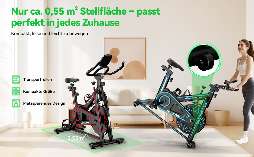 - Indoor Bike & Spinning Bike Indoor mit realistischem Fahrgefühl: Dank Schwungrad und stufenlosem Reibungswiderstand kann das Gerät sowohl als Indoor Bike als auch als Spinning Bike Indoor genutzt werden – von lockerem Training bis zu intensiven Einheiten.